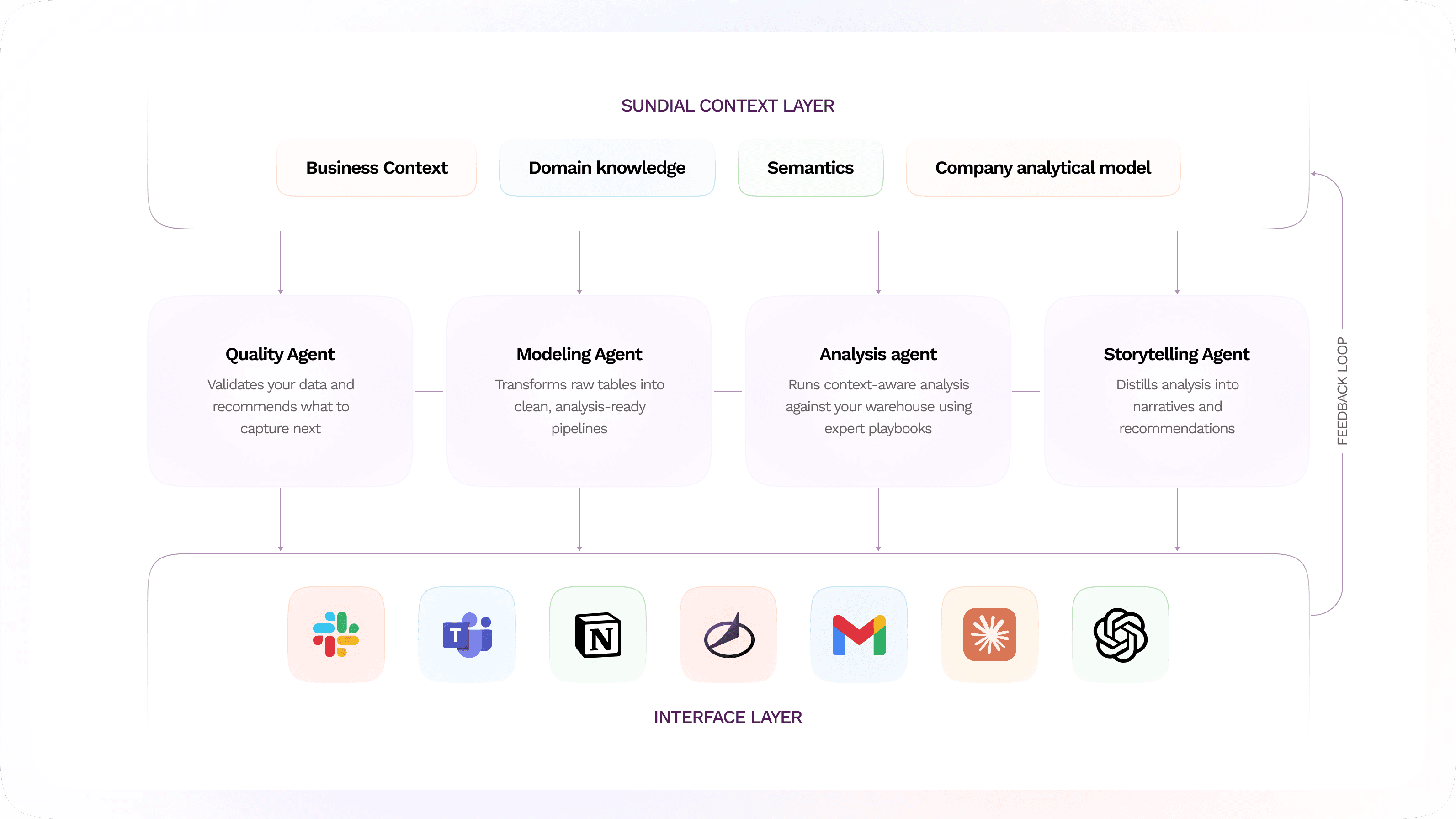 Sundial’s Applied AI team implements your data pipelines, does data quality checks, and sets up your context and analysis workflows so AI delivers reliable answers from day one.